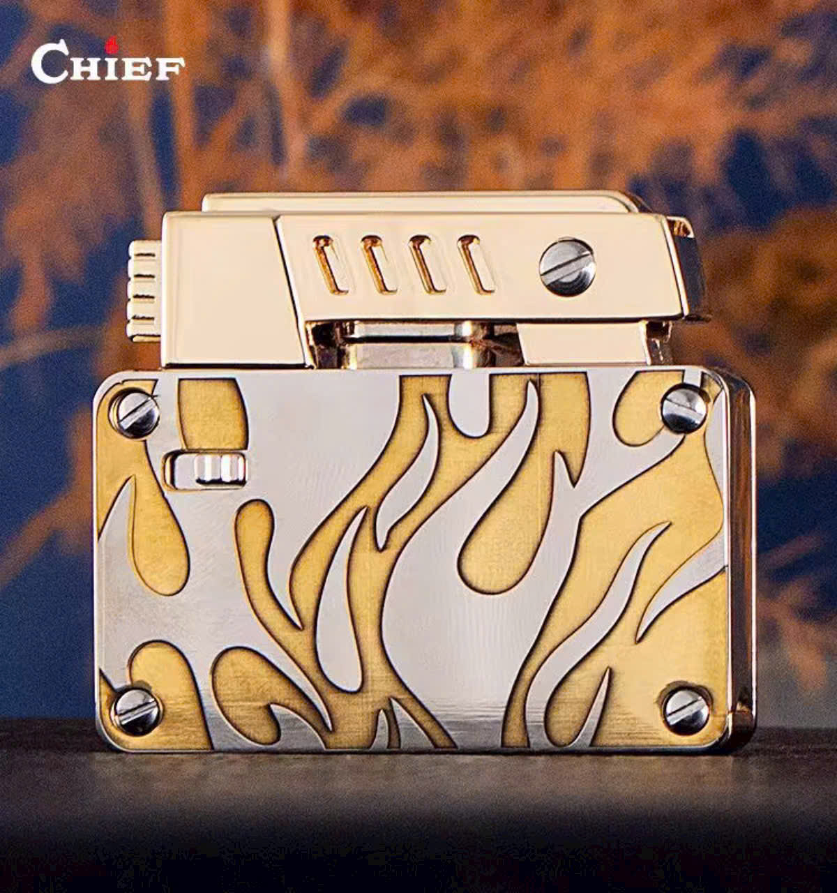 Bật Lửa Xăng Đá Chính Hãng Chief 2 Bấc Đánh Lửa Tự Động Có Khóa An Toàn CF707