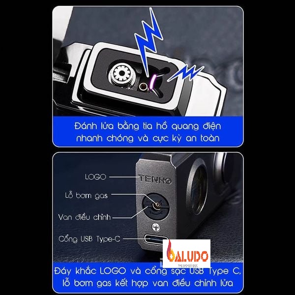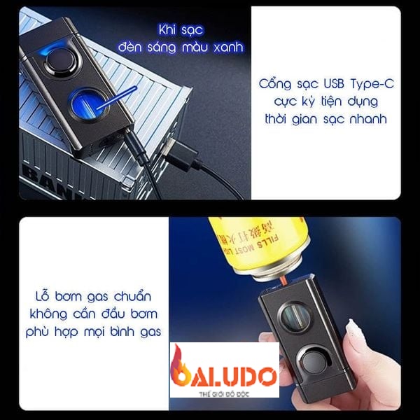 3. Thiết Kế Sạc Lại và Hiển Thị LED: Sử dụng gas Butane tiện lợi, nhưng được trang bị mạch điện tử sạc qua USB để cung cấp năng lượng cho hệ thống cảm ứng và đánh lửa. Cửa sổ trong suốt có đèn LED bên trong không chỉ tạo điểm nhấn thẩm mỹ mà còn giúp kiểm tra tình trạng nhiên liệu. Mẫu bật lửa này có thể được bơm đầy với hầu hết tất cả các loại bình gas chuyên dụng mà không cần sử dụng thêm bất kỳ đầu bơm nào.